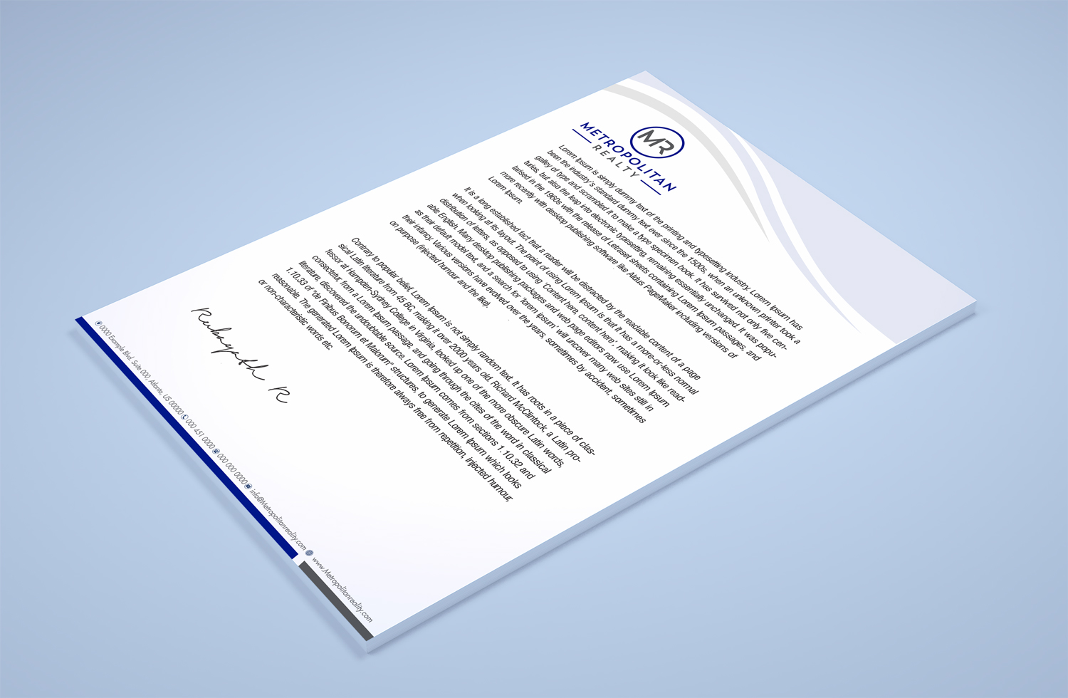 Petter Goms, ein Indian designer, created this Modern stationery on 26th November, 2018 for Elli NY Design, ein Unternehmen in United States. The stationery was designed for the project 'Letter and Envelope Design For Metropolitan Realty'.