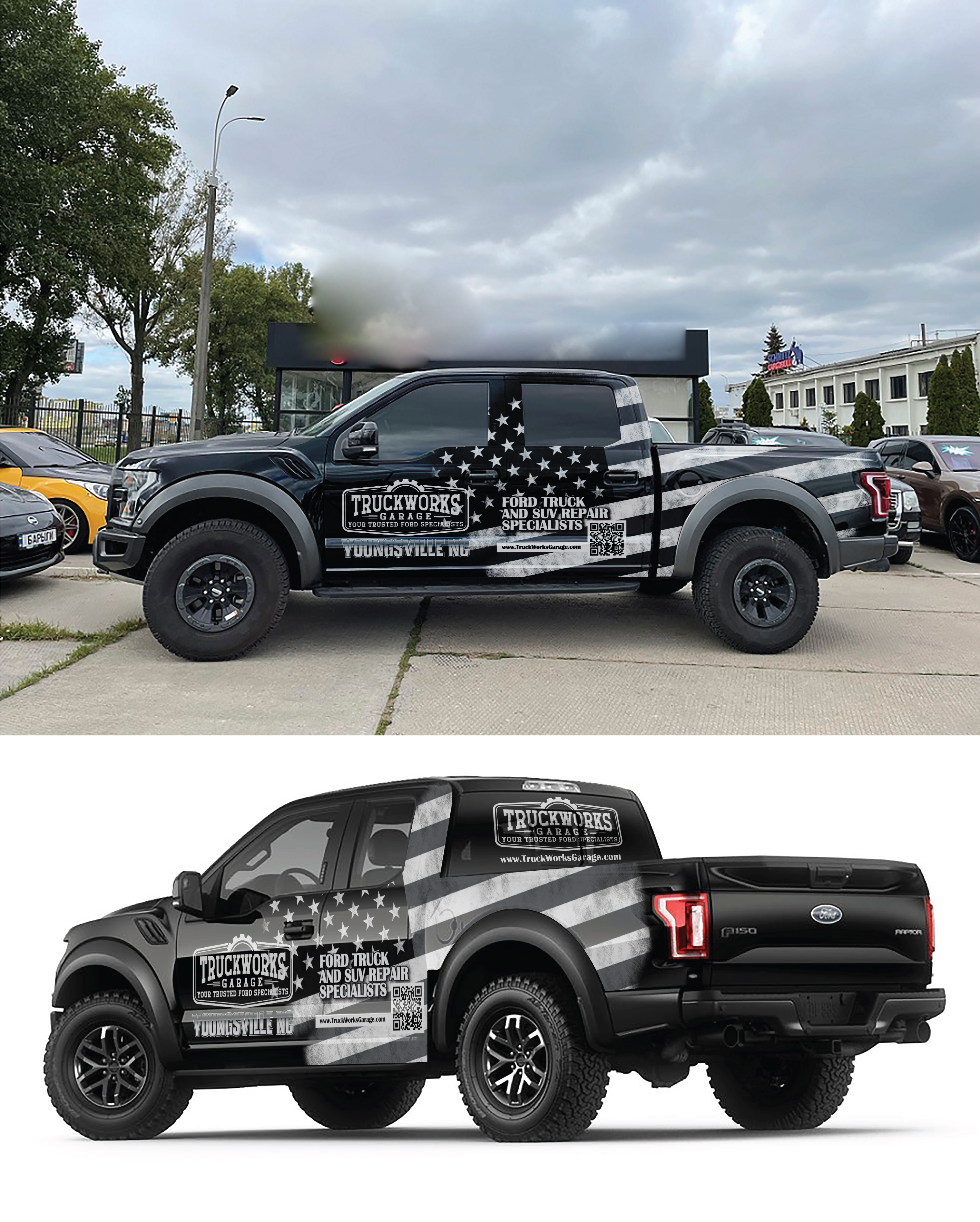 Weitere Car Wrap-Designs von 'Sporty/Patriotic 1/2 Vehicle Wrap design for a Truck/Auto Repair shop'