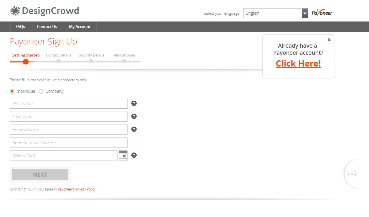 Periodically we offer time limited sign up promotions with Payoneer. These offers apply to new Payoneer accounts and to existing Payoneer accounts previously un-linked to DesignCrowd. To be eligible for the bonus payments, add Payoneer to both payout preferences in your DesignCrowd account by the registration deadline specified in the promotion. Your Payoneer account must receive the minimum payment by the and of the promotion period as per the offer terms. Designer accounts that have previously received a DesignCrowd payment via Payoneer are not eligible for the rewards offered.