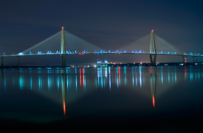 I would really like to incorporate an image of the Arthur Ravenel Jr. Bridge that connects Charleston to Mount Pleasant, SC. I've included some images of the bridge here. We don't need to use these directly, they can be stylized.