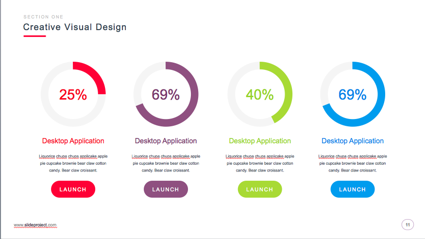 Jeder Schieber zeichnet eine der Charakteristiken der Marke des Kunden aus sowie den Stil, den euer Logo widerspiegeln sollte.