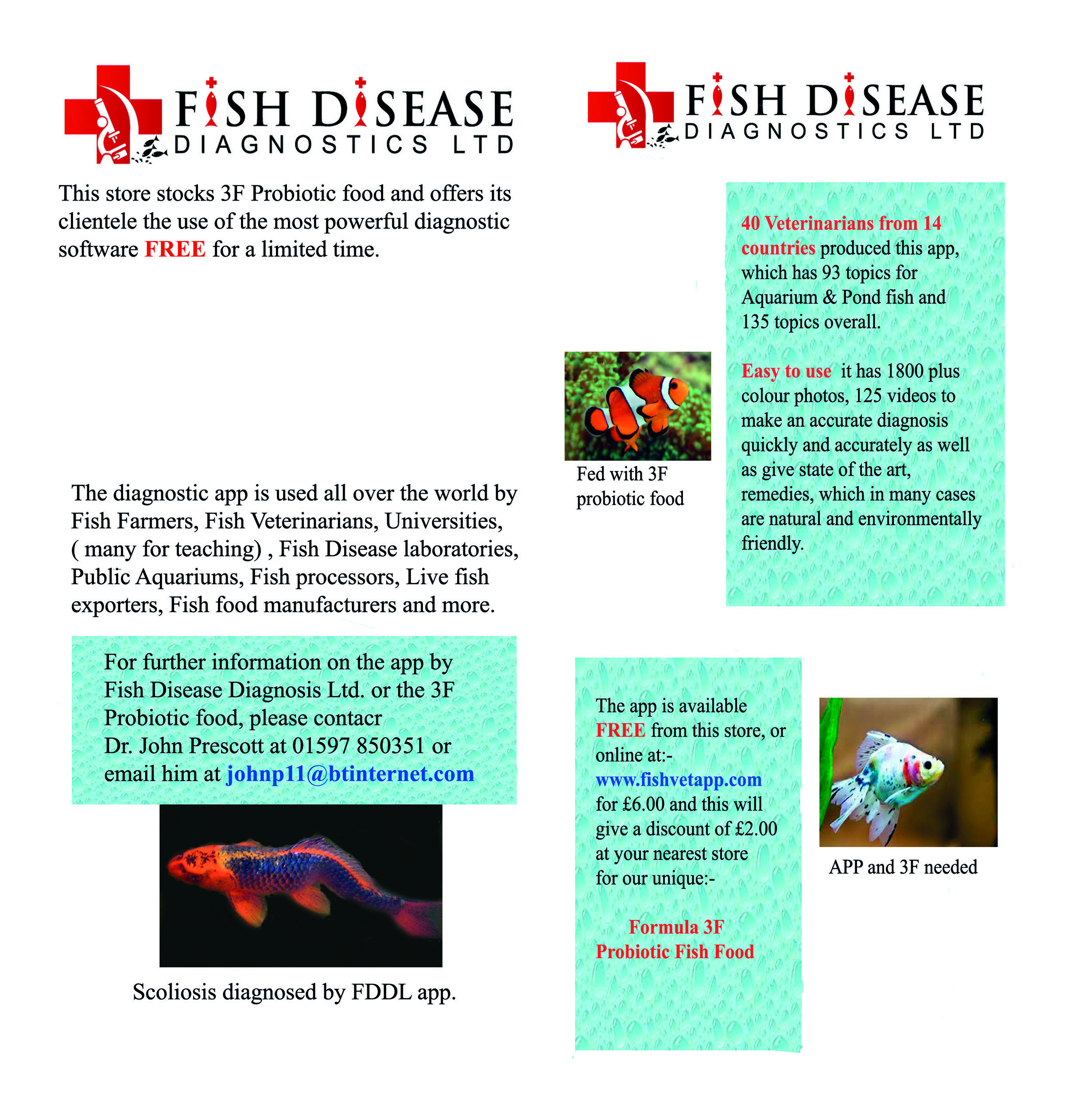 Fish Disease Diagnostics Ltd Advertisements and 3F scientific food