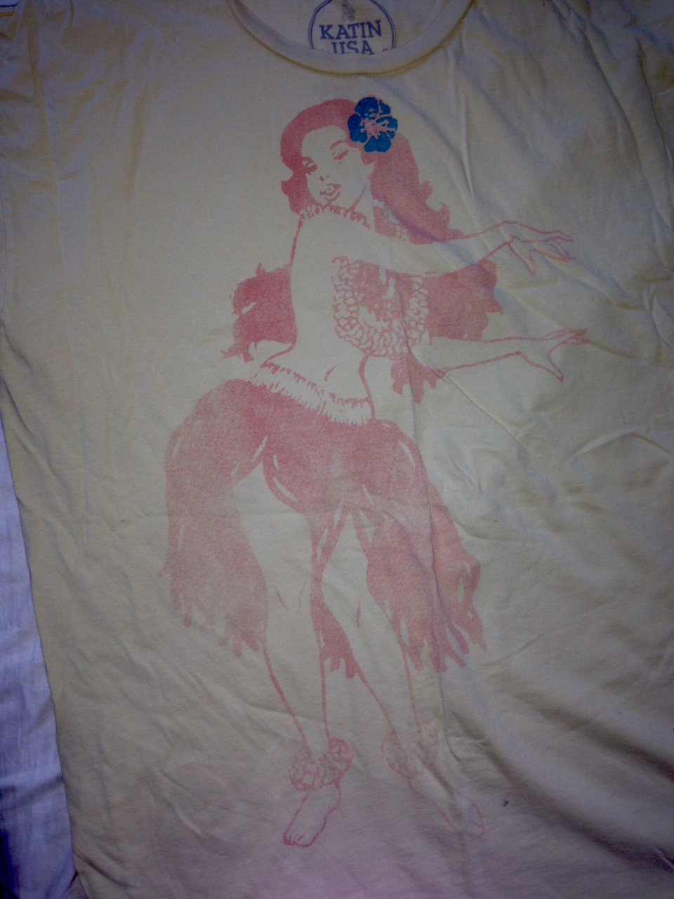 Made in Hawaii Womens T-shirt line requires an awesome Hula Girl design. All our designs are printed with water based inks. Many sin single color or multiple color bleeds.