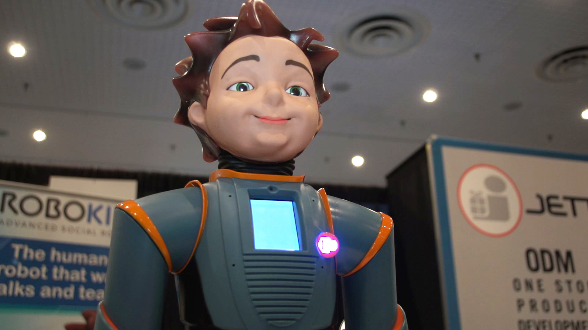 - Please incorporate a happy robot into the logo. I do not want the logo robot image to match the robot we are using but a more futuristic happy robot.