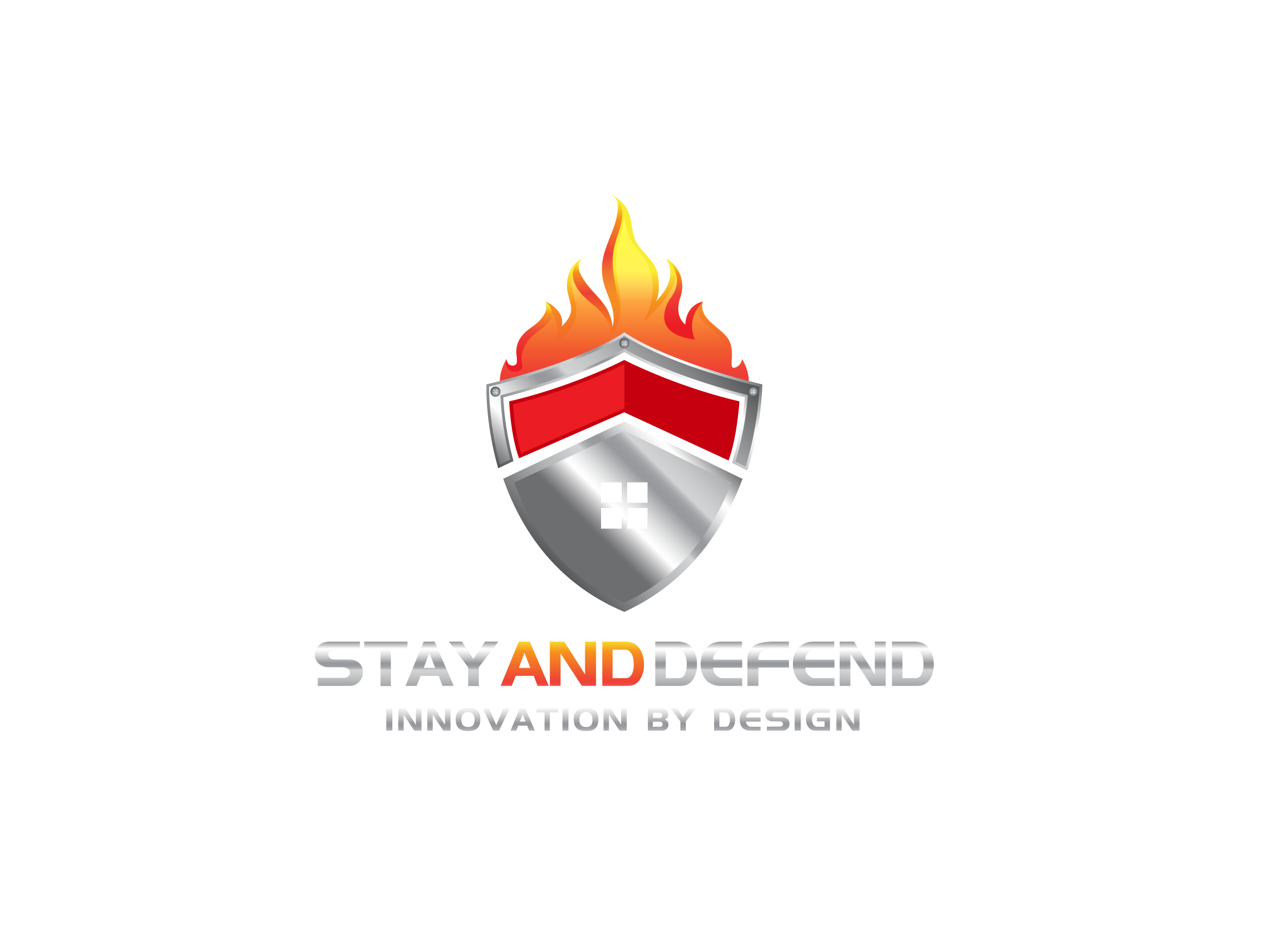 - The colors of the Stay and Defend logo. Must incorporate the word 'Innovation by Design, and Fire Resistant Modular Refuge.