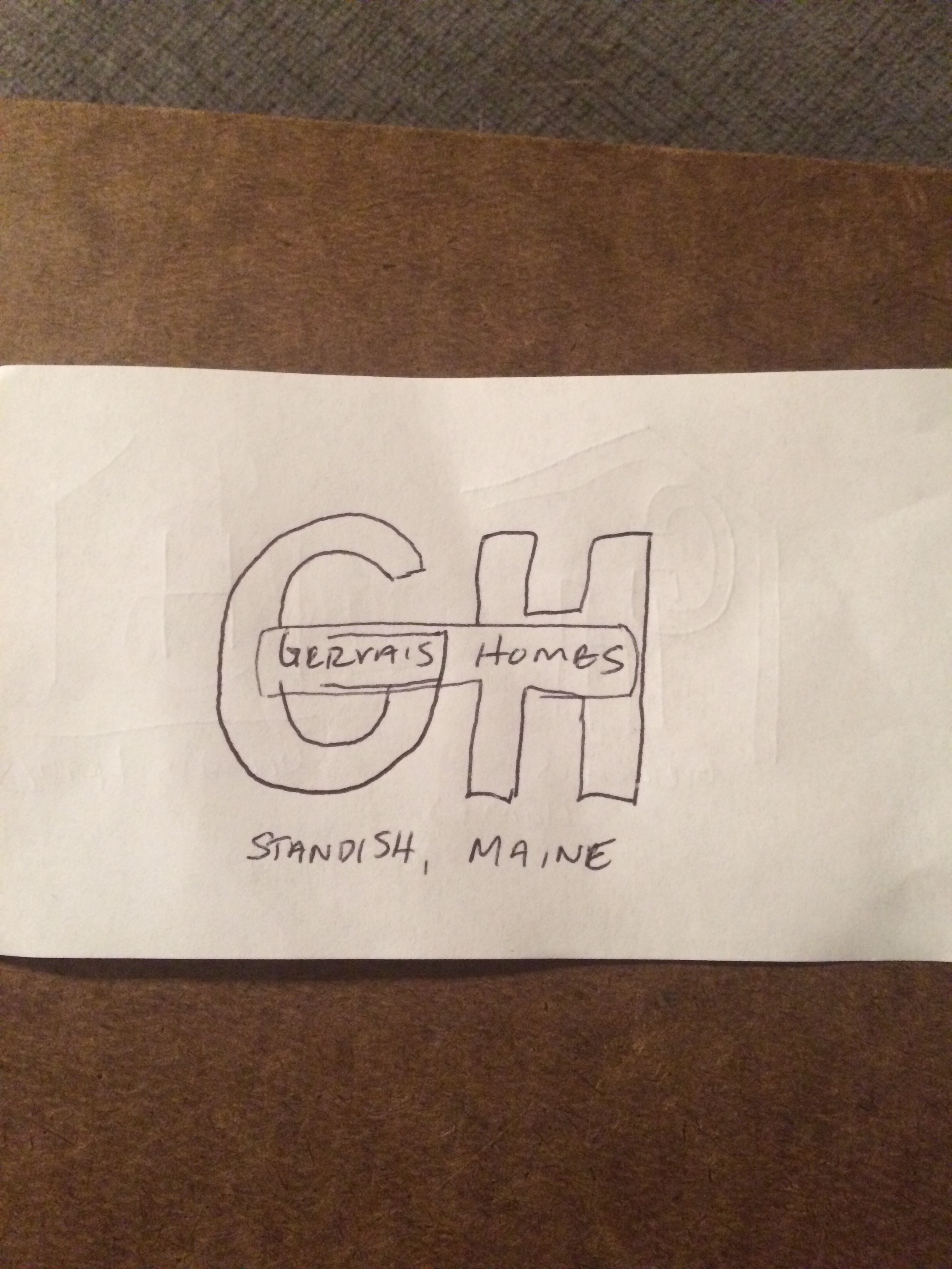 I would like the logo to be a large GH in the background with "Gervais Homes" in smaller letter in the middle where the horizontal line for the g & h are (see attached) drawing. I would like Standish, Maine under the whole logo, again see attached sample..I would like the GH to be in a modern font. Earth Color tones. I attached at picture of Goliath Company logo as a reference to the kind of logo that I am looking for. I would like this to be simple..
