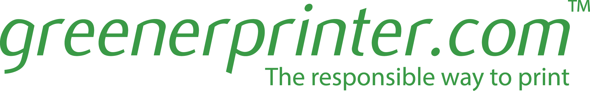 - Greenerprinter (logo)- the responsible way to print along with our Bcorp logo