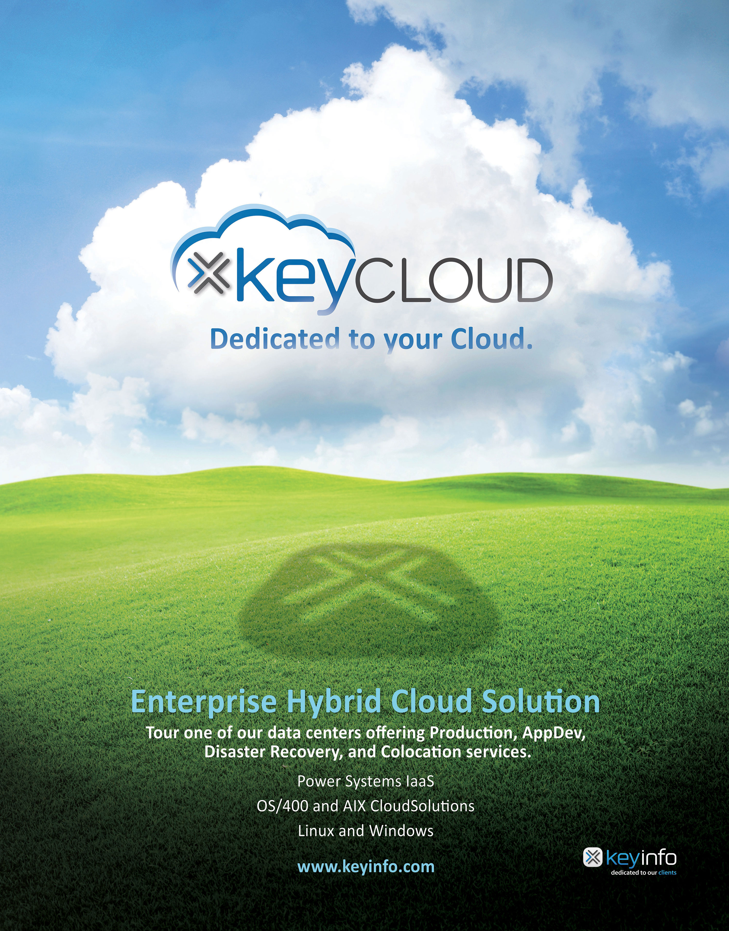 KeyInfo is the name of the parent company. The product we are showcasing for this ad is called KeyCloud (logos for both attached). KeyCloud is our cloud computing offering. It is a completely customizable cloud solution built on the IBM i operating system. (Please note IBM i is a lowercase i). This operating system is used by many large hospitals, financial institutions and logistics warehouses to run entire company infrastructures. This is all high-tech, geek stuff! KeyInfo’s cloud offering, KeyCloud, is one of the few in the mid-west region of the United States to offer the IBM i operating system in the cloud.