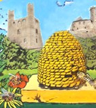 - Honeycomb, flower, flower or bee swarm High (see description) honey comb, flower, bee, ruined castle on a white background or not to dark background with border shadow to white