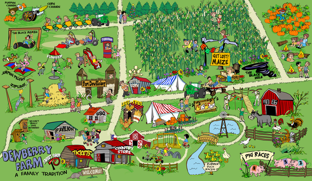 - Vertical picutre: Ideally I would like to have a CARTOON tour map that matches the horizontal picture's color / theme / style (like tour of the nursery - in a cartoon picture) which could be done from a child's perspective (for example sth very creative like a zoo map, attached are some zoo map examples for your reference) .