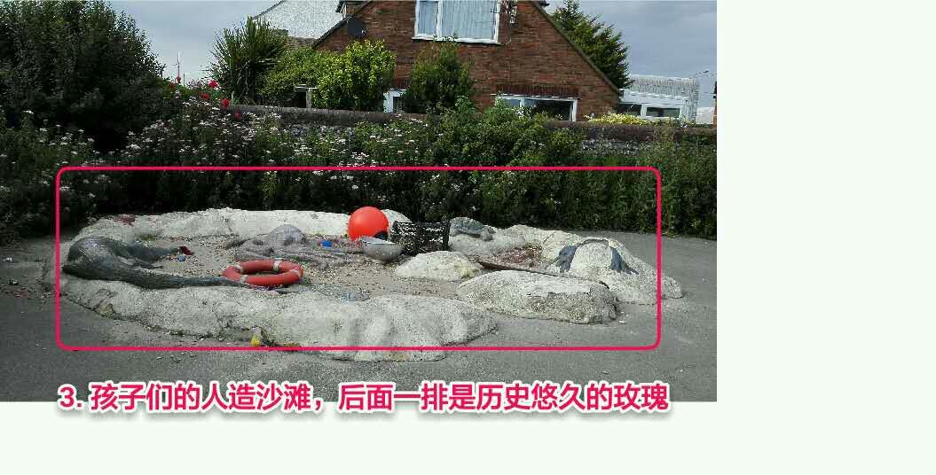 No. 3: virtual beach area, lots of aged roses behind it
