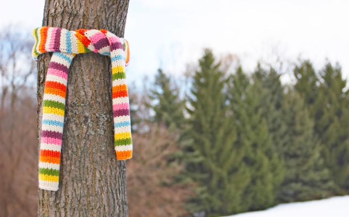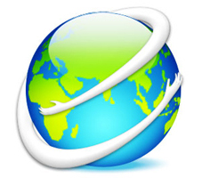 Planet earth with a rainbow scarf around the equator, and a knot in front like the scarf was hugging/grasping/ surrounding the planet.