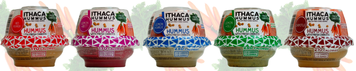 I need a point of sale sign to help merchandise a new line of fresh hummus dip that is packaged with fresh carrots. Please use the attached carrot image, attached logos (black & white), and the following taglines: