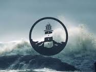 - Logo based around a lighthouse, on a solid/land/rock base with rough seas around