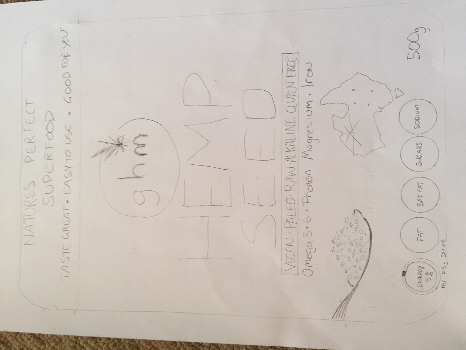 We need a packaging design for the release of our Australian sourced Super Healthy, Nutritious super food HEMP SEED.