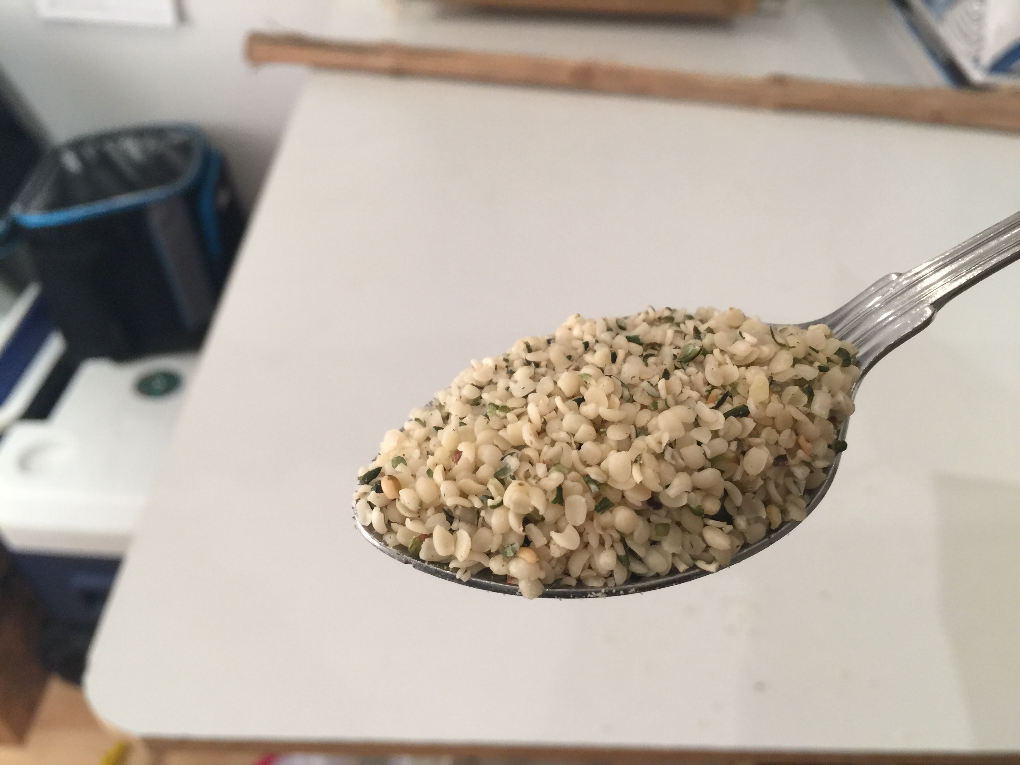 - Spoon of hemp seeds or picture of Hemp Hearts