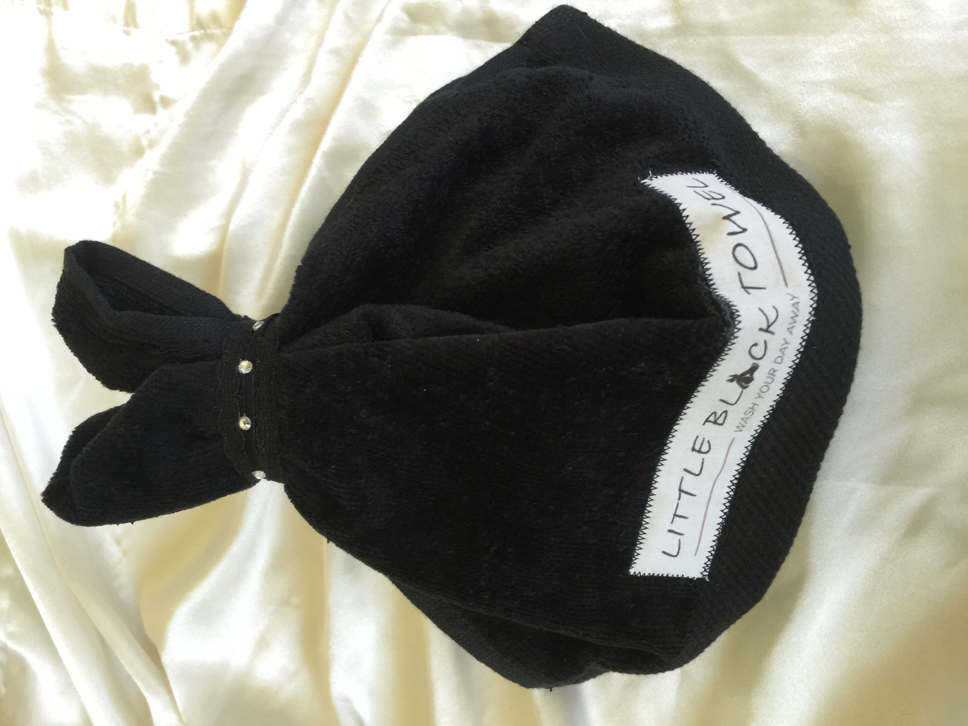 It's a black hand towel in the shape of a little black dress. it is called LITTLE BLACK TOWEL, it is a NO SHOW MAKEUP TOWEL. (doesn't show our makeup stains) Made in USA