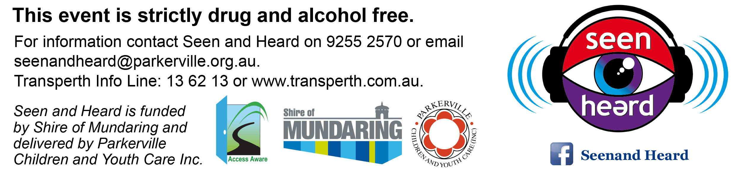 - Bright, some reference to film, logos for Seen and Heard (just the eye graphic with Seen and Heard text) and the Mundaring Community Bank, needs to be eyecatching, conversation pieces so people ask what it is about.