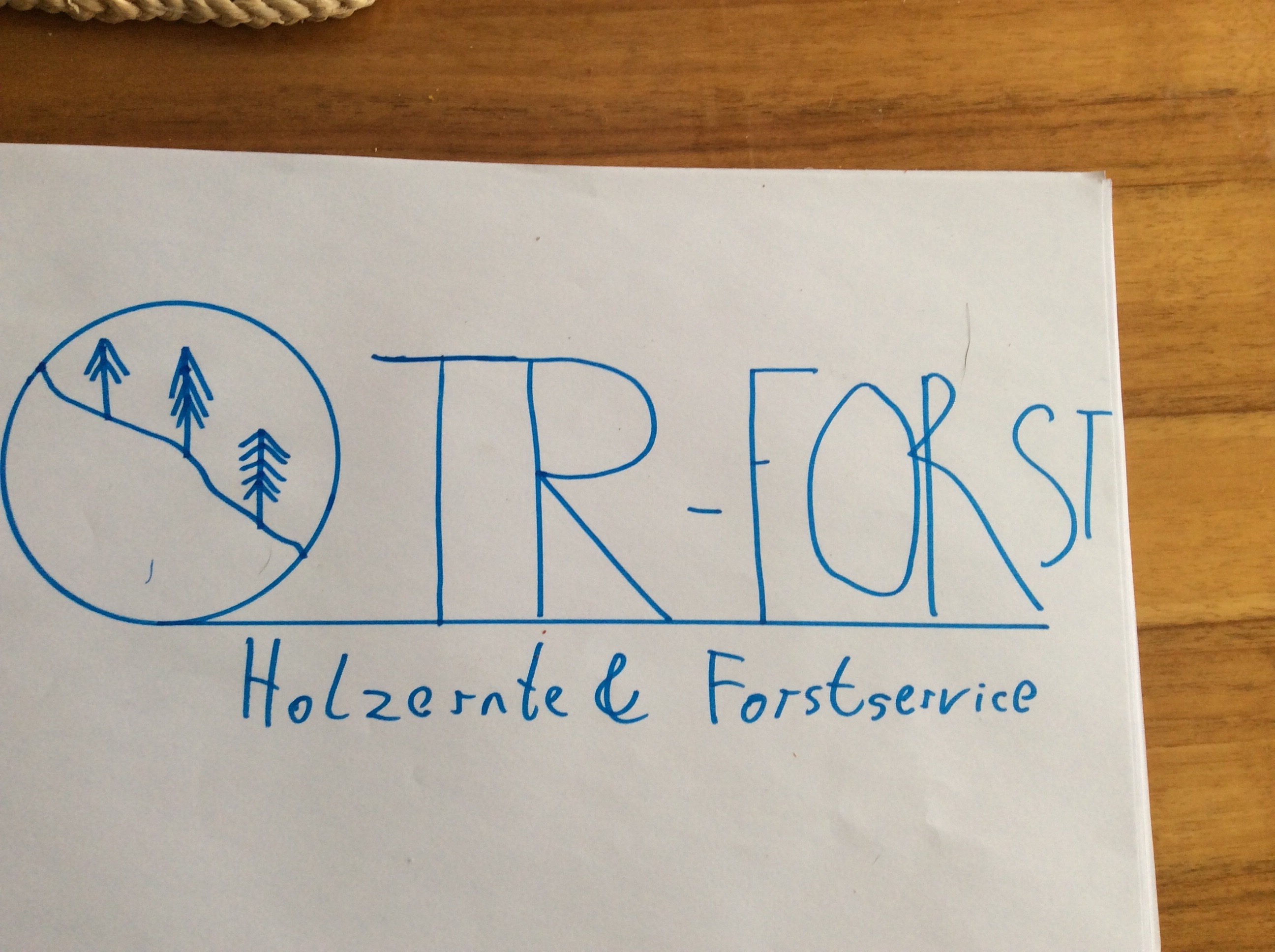 - On the left hand side of the logo i want a circle with 1-3 trees standing on a hillside from the bottom of the circle i want a line running from right to left. On top of that line I want the company name TR Forst.