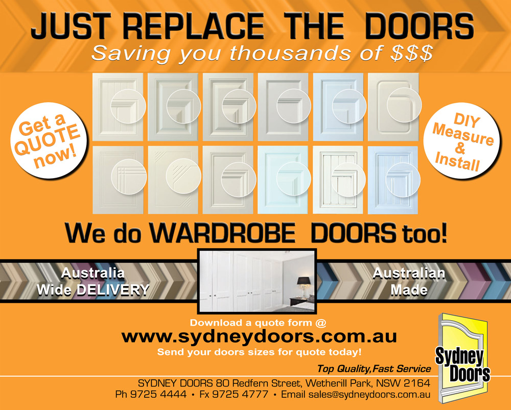 Headline under the above: UPDATE YOUR BUILT IN WARDROBES WITH NEW DOORS