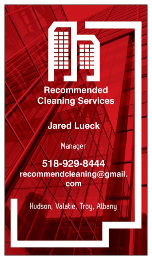 Janitorial cleaning particularly for commercial buildings. Website needs to specify free estimates. Location of service is Hudson, Valatie, East Greenbush, Troy, Albany ny area. Services page with Janitorial services- General Office Cleaning, Construction Cleaning, Carpet Extraction, Consultation/Business, Lighting Maintenance, Seasonal Deep Cleaning, Window cleaning, Event Cleaning, Floor and Carpet Cleaning, Floor Striping and Waxing. Contact us page with email phone number on page and a request page that emails me if they have any questions. About us page-the picture of my family on it with a section I can type a story myself.