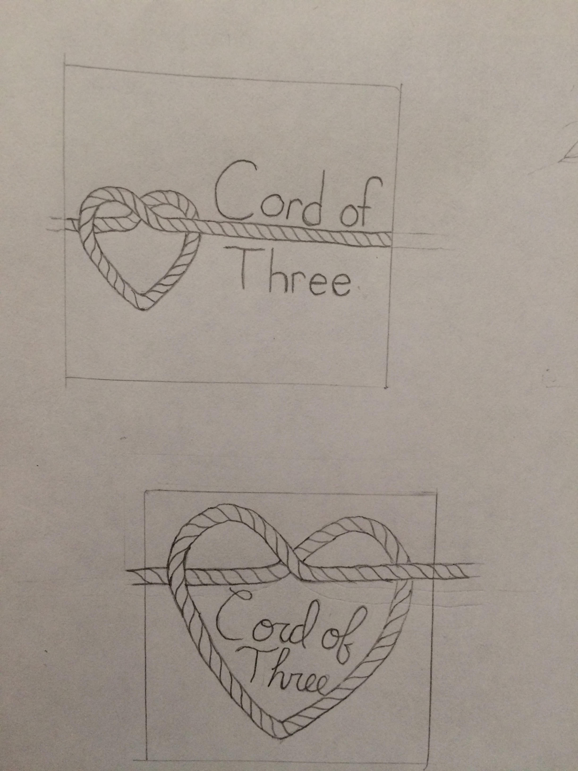 The name of the marriage podcast is "Cord of Three", representing a bond between the husband, wife, and God. The artwork needs to include a rope tied in a heart shape and the podcast name (Cord of Three). I prefer a simple background, but a subtle pattern would be okay too. In general, simplicity is better. The artwork should be easy on the eyes. This cover art is what my listeners will see in their podcast app next to each episode name. The image is small, so the text needs to be large enough to read in this context. This means there will not be enough room for large pockets of blank space. The design basically fills the entire canvas.