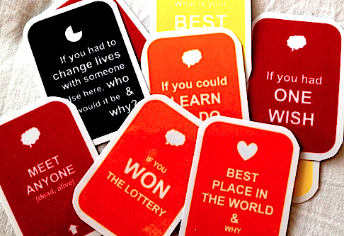- Design for the front of the card where each card has a text question like "If you had one wish" or "Little known fact that no one knows about you".