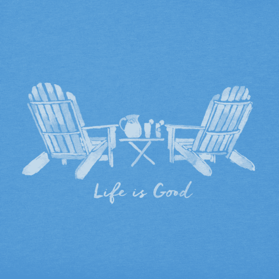 Create something similar to this design of two Adirondack chairs. Give it a hand painted look as you see it. Put a table there that looks different but with a margarita glass and a rum glass. Below it put text in a script type font that says