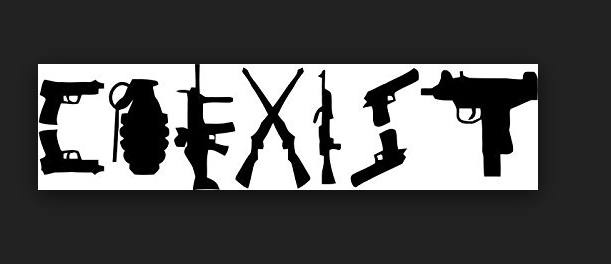 - The word COEXIST spelled out with various rifles, handguns, ammo, etc.