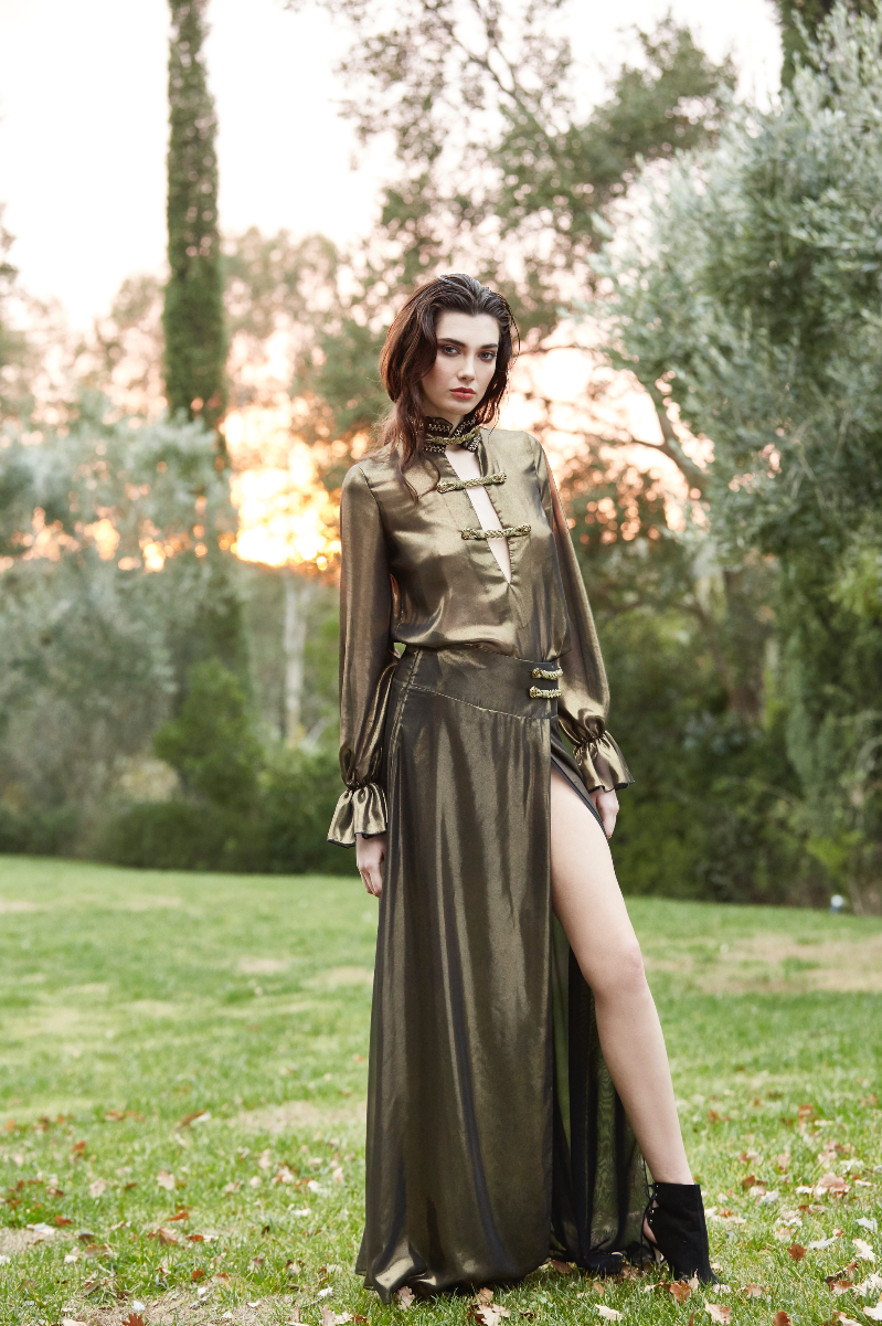 The brand has an high level target and is focused on luxury, elegance, fashion, womanhood and classy. The products are principally evening dresses totally made in Italy and made with precious fabrics and embroidery.