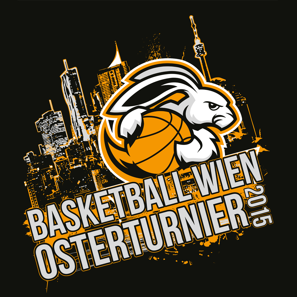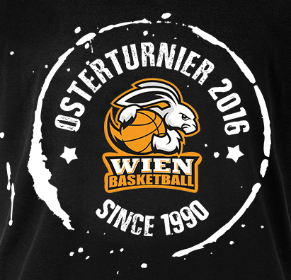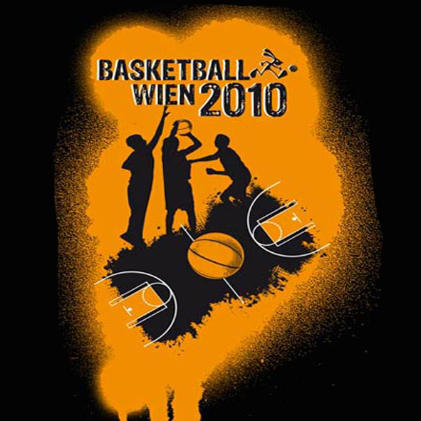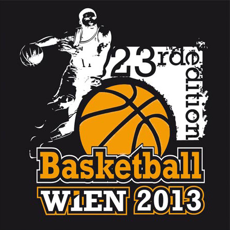 I need a layout for a youth basketball tournament T shirt. The players are 12 to 20 years old, the event is situated in Vienna / Austria. The T shirt colour will be black or dark blue. I upload the layouts from our previous tournaments. The layout has to be different from these.