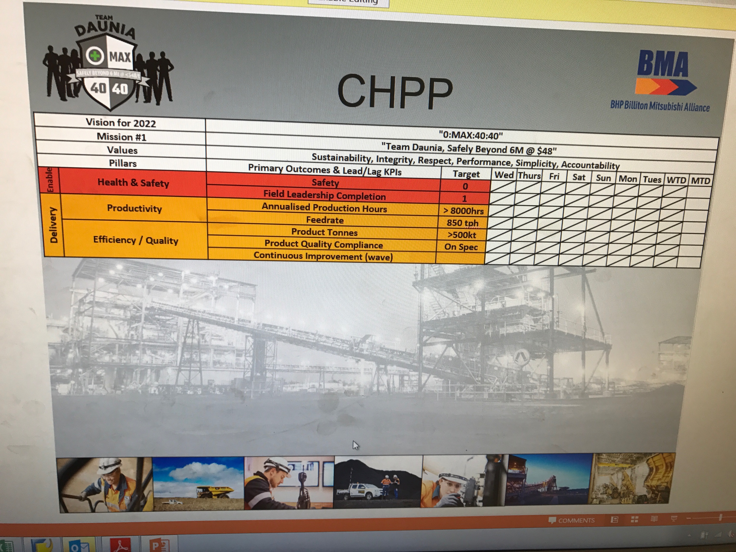 We are a mining company called Peak Downs, our catch phrase is Peak and Proud. We are a mining company that removes overburden material, dirt, from one place to another to expose coal, drill, blast and the use of very big trucks and draglines.