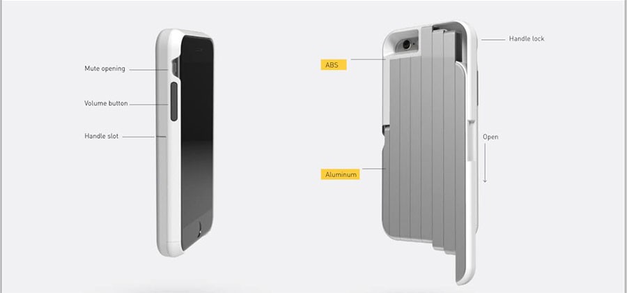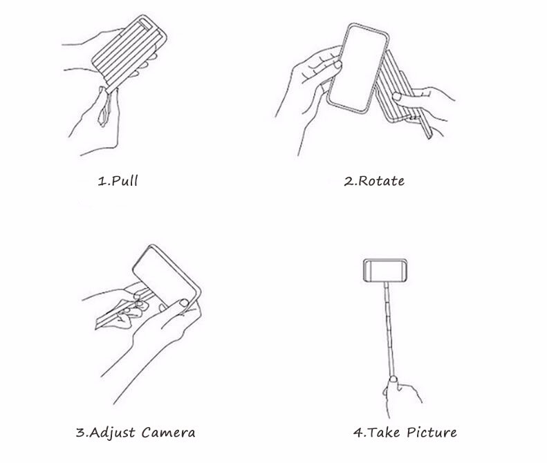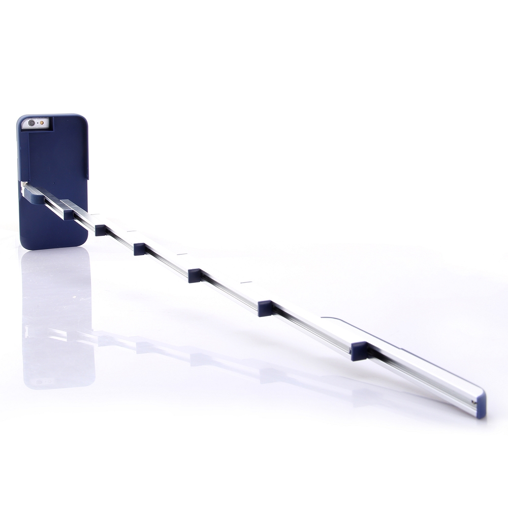 I need an eye catching package design for an eye phone case that has a selfie stick built in. in ]needs to be neat, clear showcase its unique feature or being a 2 in one.