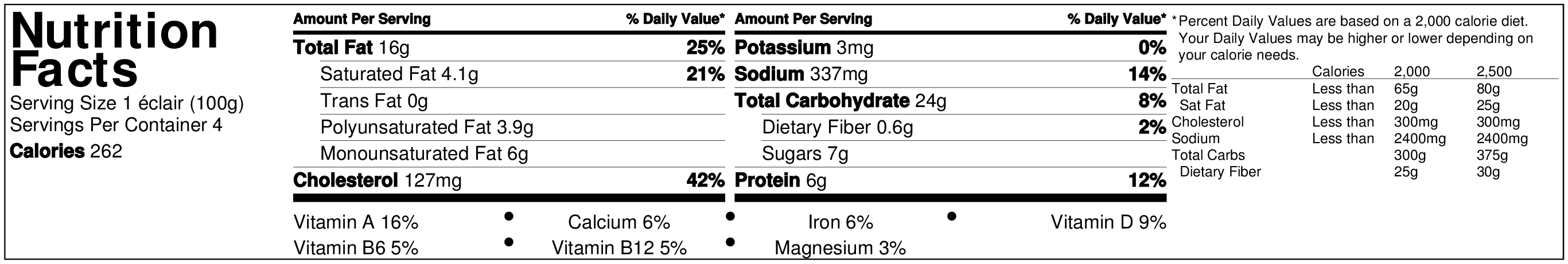 - "This box contains: 4 éclair shells, powder pouch, icing bag, pipping bag and pipping tip"
