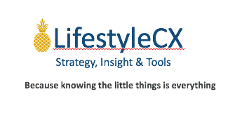 simple pineapple icon in a contrasting color next to a navy blue or teal/ sea green type that says LifestyleCX. Underneath Strategy, insights & tools. Underneath that the tag line: Because knowing the little things is everything..see pineapple icon inspirations to create a new icon