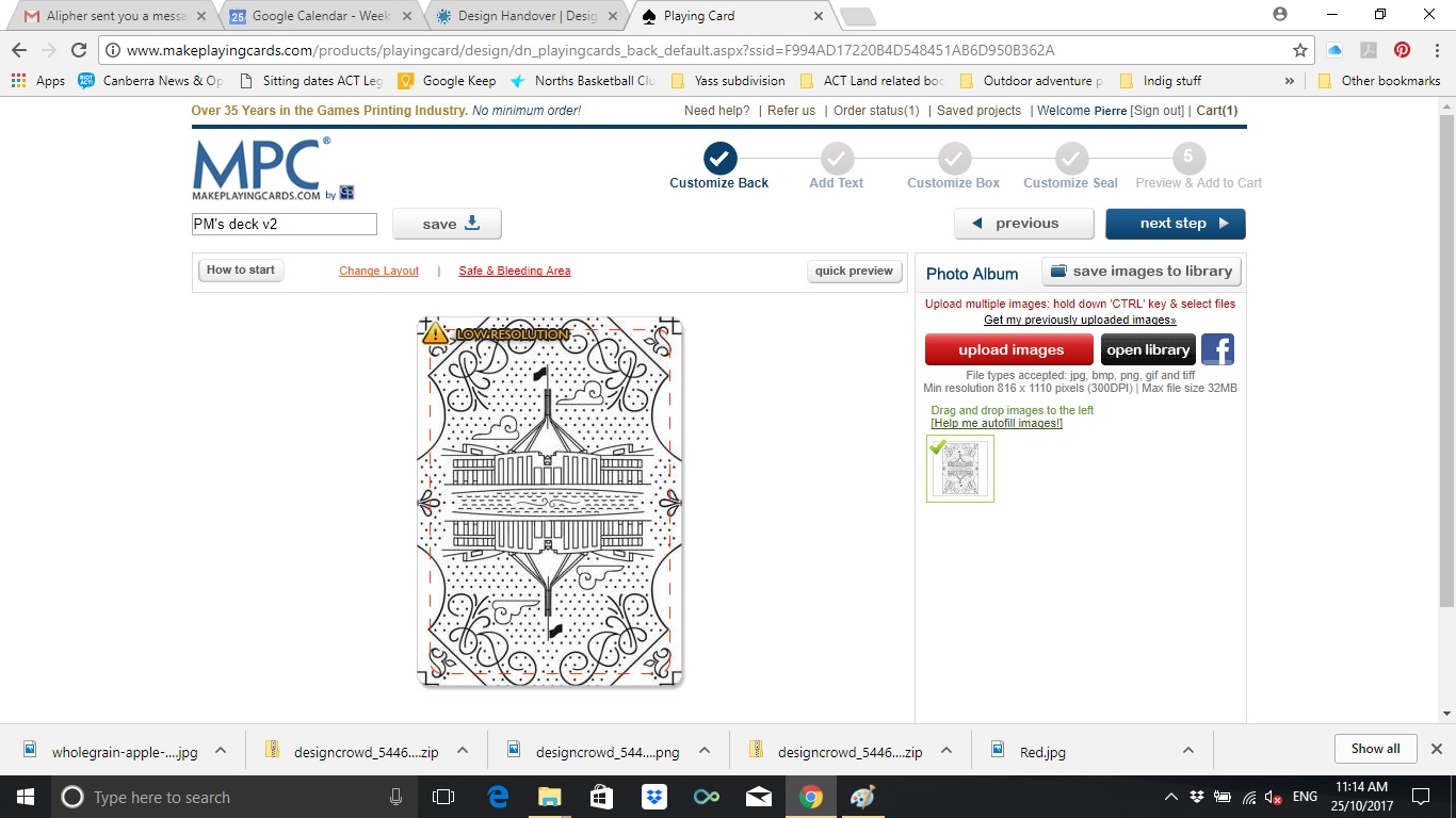 2. Bicycle - Back of card example Friday, 13 October 2017 02:26:22