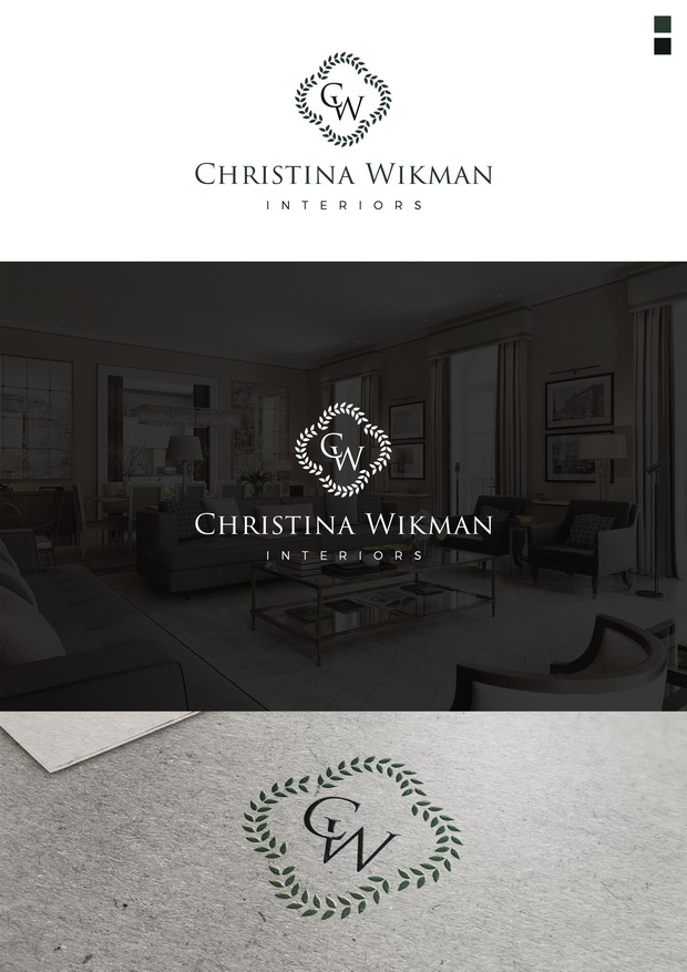 Take my existing logo and replace the quatrefoil with a laurel wreath but still keep the shape of the quatrefoil. I would also like to change the company name from Christina Marie Interiors to Christina Wikman Interiors. I am open to also using my initials (CWI or just W) as the logo in combination with a quatrefoil. I would like to change the colors of the logo to something darker and more readable. I like the idea of deep hunter green with black or dark gray font. Overall I am looking for a sophisticated, refined look that will represent a high end residential interior design firm. I included some examples of logos that I like.
