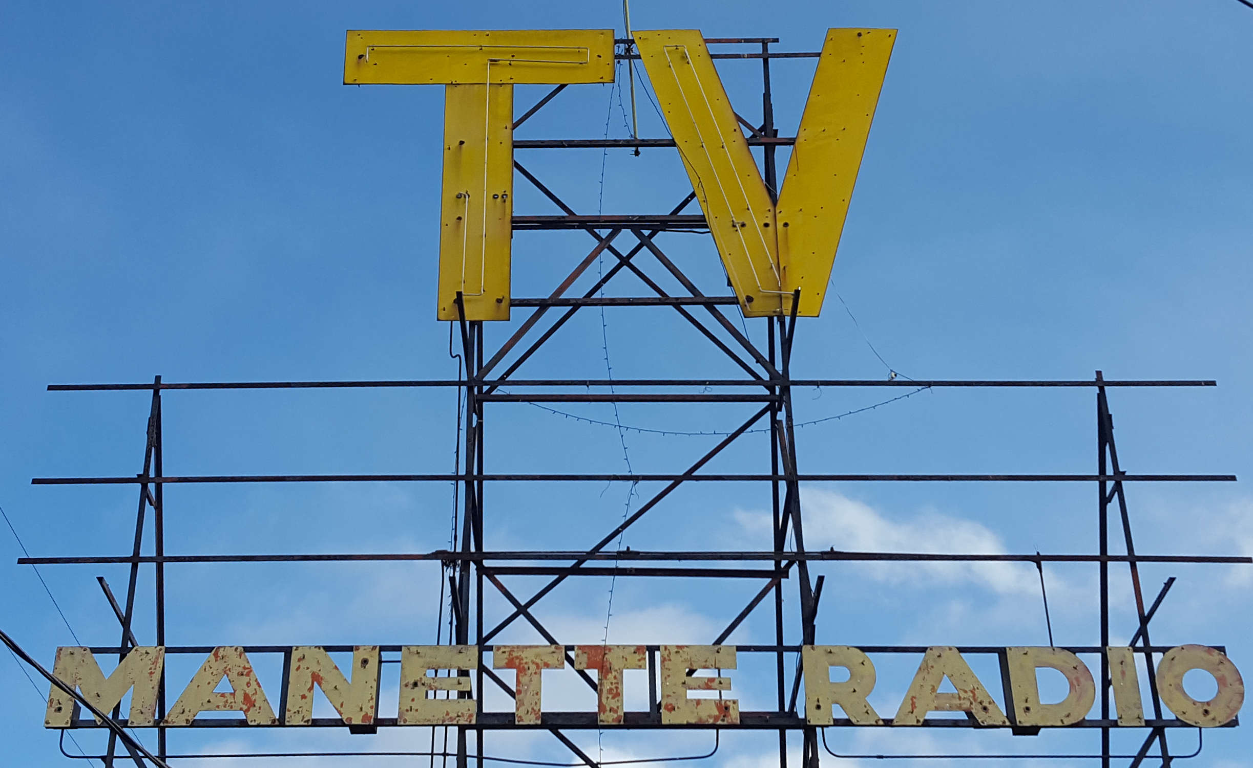The logo is for a community running/walking club. The community has an old iconic TV sign on top of a building that everyone in the area recognizes. I want to do a stylized adaptation of that sign for this designed logo.