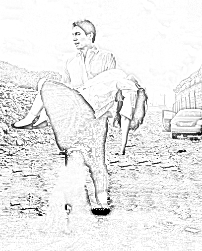 It is a private area...somewhere in the deep interiors where they use to dump waste. The area is surrounded by big grunge compound wall. There is a nice car parked up in the background, with the trunk and the passenger door wide open. This is our backdrop...