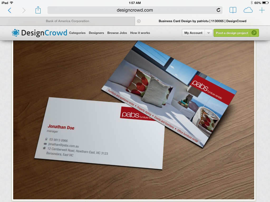 - *** I took a screen shot of a super clean design on a business card a like. Take note of the clean white side with contact info and disregard the side with a photo ***