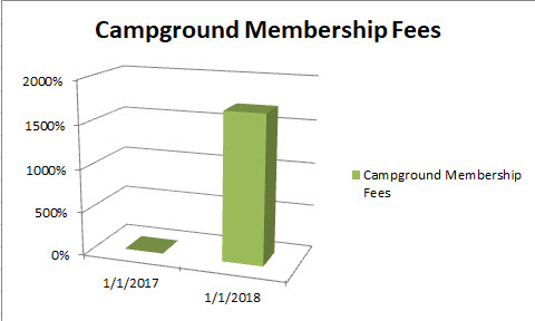 1700% Campground Membership fee increase info graphic