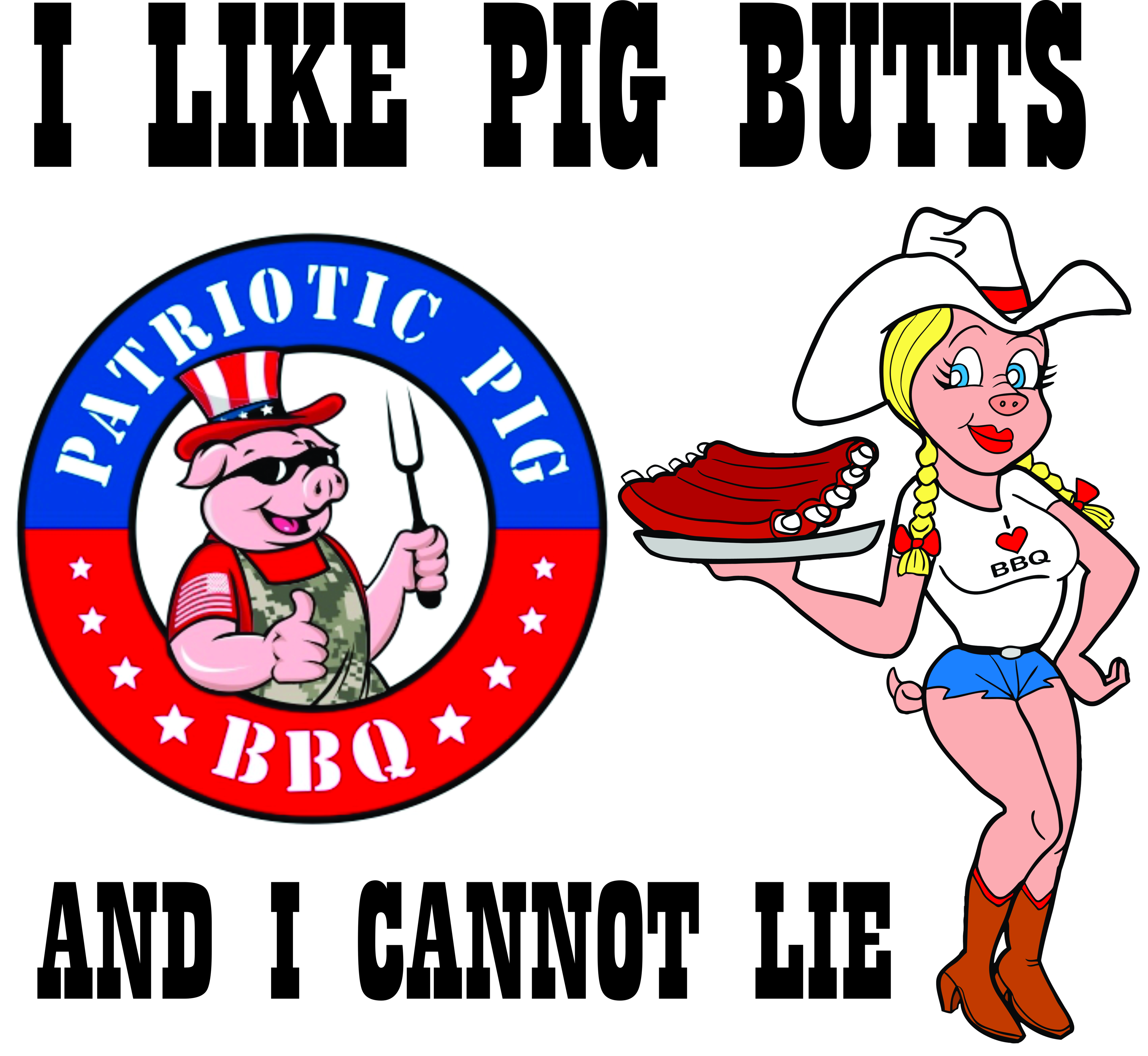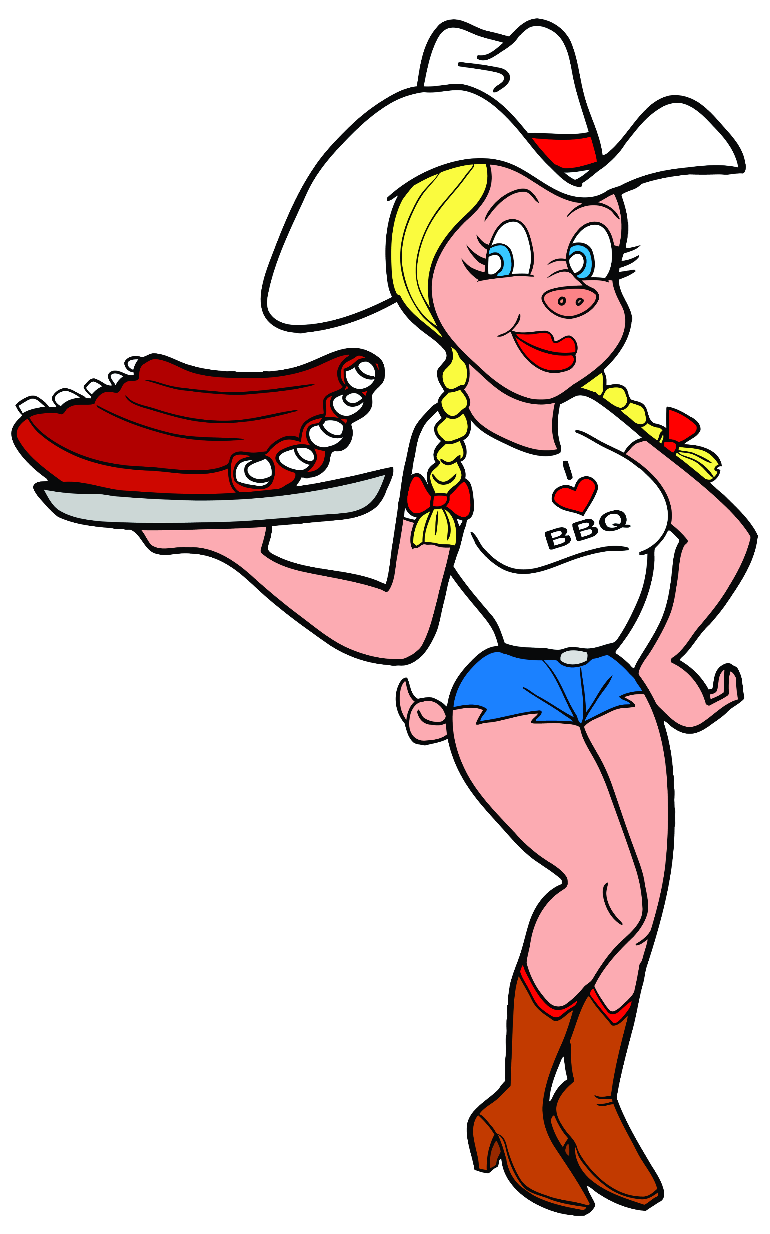 I want to have that sexy female cowgirl pig standing on the right side of the logo. (See Logo_and_Female_Pig_Placement_Example.jpg)
