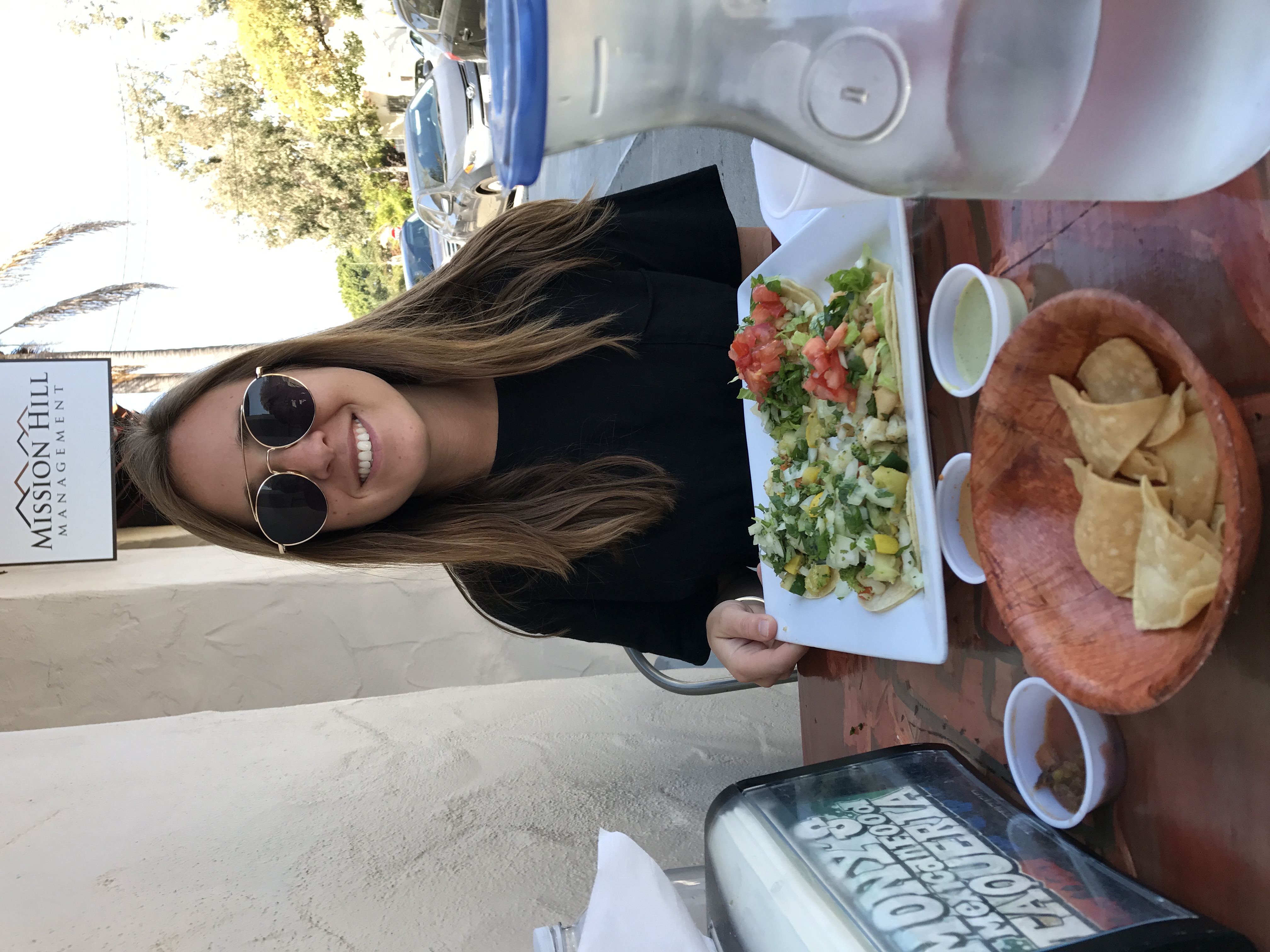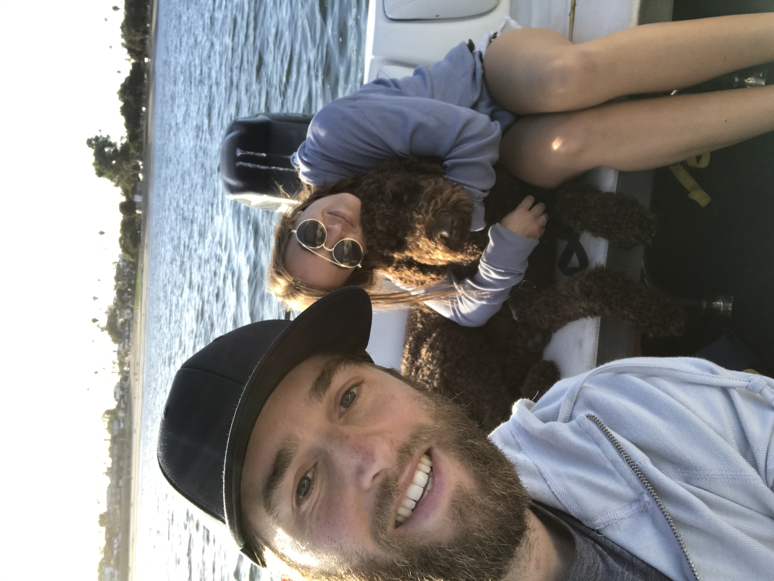 I would like a design for a poster featuring myself, my wife, and my dog in illustrative form in front of a beach / palm tree background. I am looking for a Los Angeles / California art deco vibe. If possible, I'd like our heads sticking out the window of the car. If not possible, have cartoonish versions of ourselves.