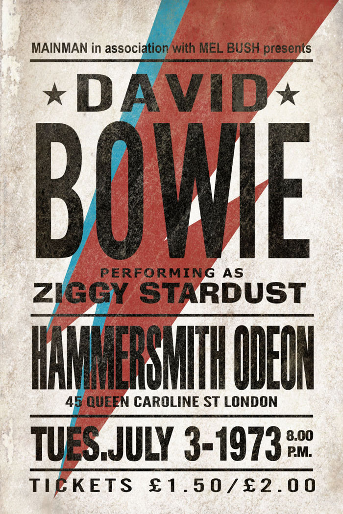 - Use the lettering to be block lettering, and use only one color (such as black) and make it closer to the lettering in the "david bowie poster" image attached