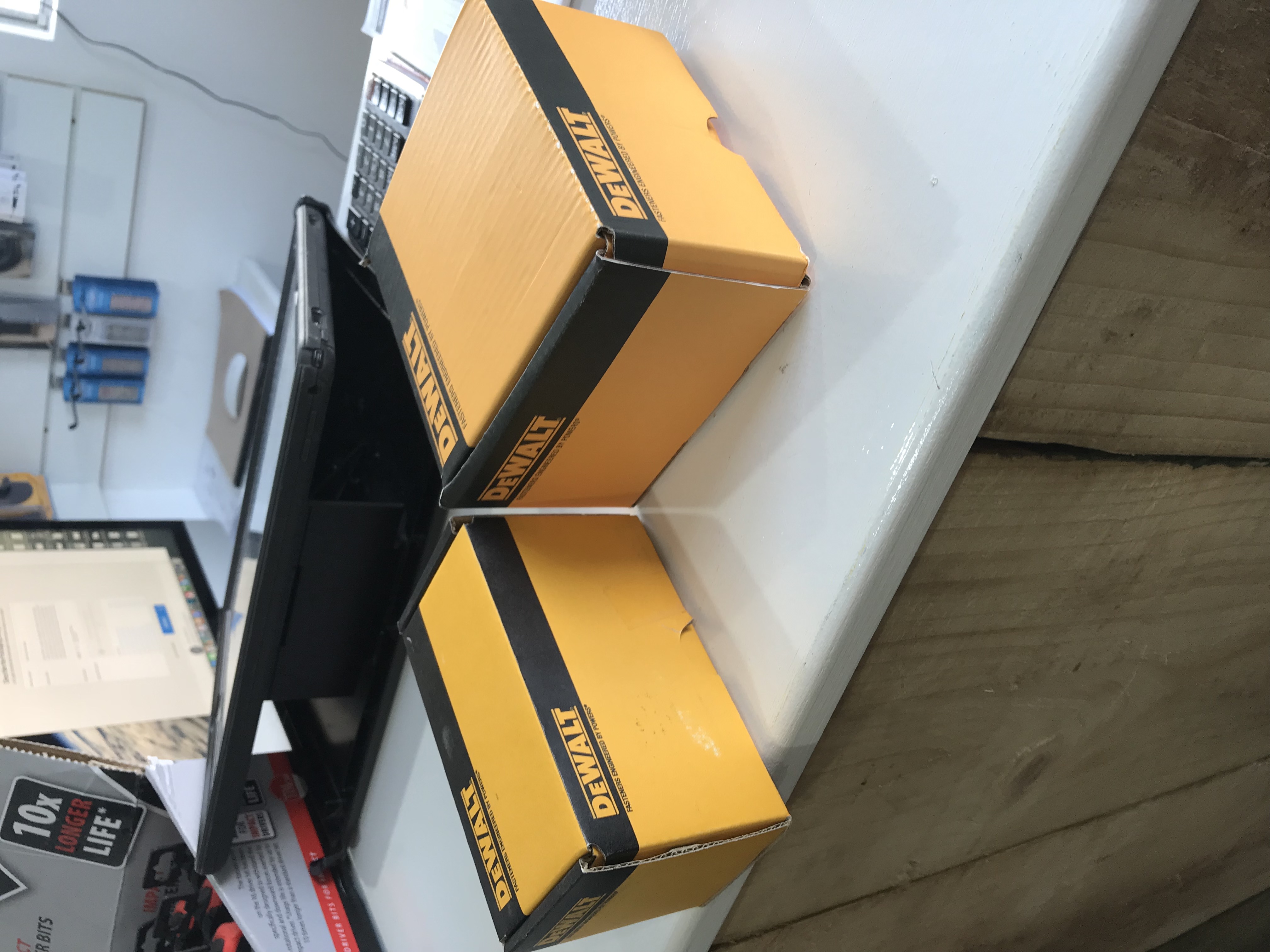 - The Carton should be cost effective for the box maker. The carton will contain 10 boxes. If you could design them in such a way that they can be manipulated easily to cater for the various sizes. The internal boxes that hold the screws will have colour. I like the layout of the Dewalt box where the lid folds out over the front of the box. Blue colour #009ee2 Grey colour #4a4a49