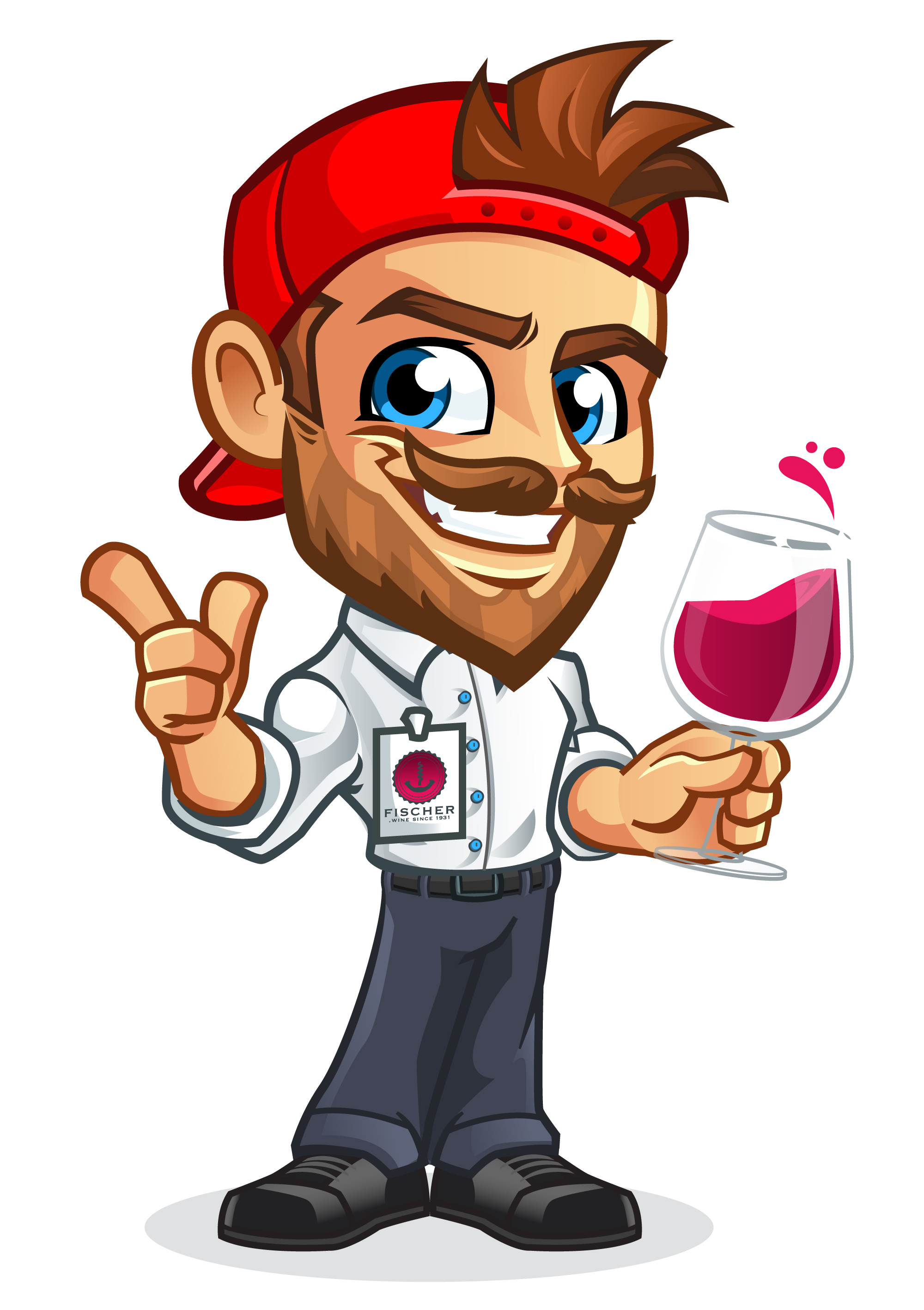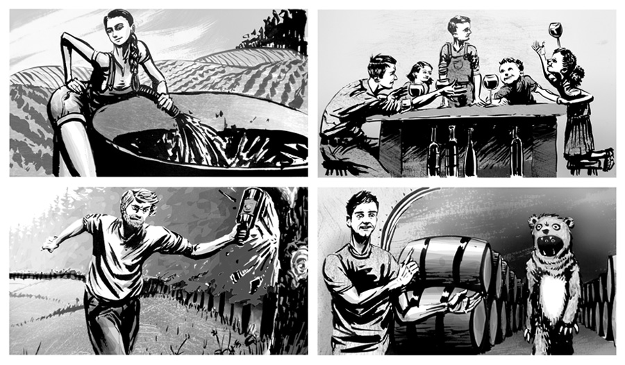 - maybe some funny elements, can be the look of the winemaker with beard and cap or something else