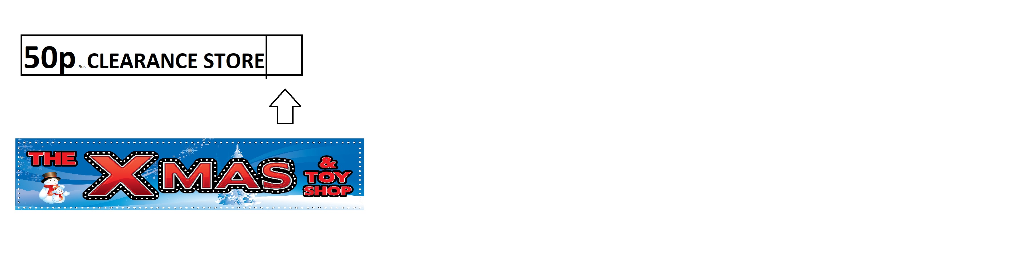 The front sign must read - 50p Plus Clearance Store with the last 1.5m showing the the Xmas Shop open all year (see image 1)