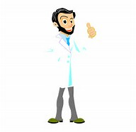 - 2. A man in a lab coat, black hair and beard, and vaping.