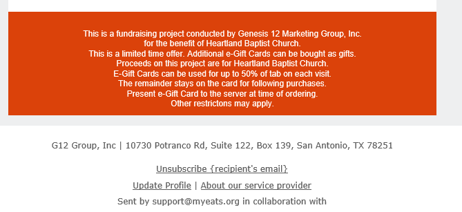 - Must clearly present itself as a fundraising tool for schools, leagues and Nonprofit organizations.