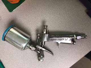 TO GAIN A BETTER IDEA OF THIS DESIGN, GO ONLINE AND LOOK AT GRAVITY FEED SPRAY GUNS. This filter goes in the top of the gravity feed spray gun.